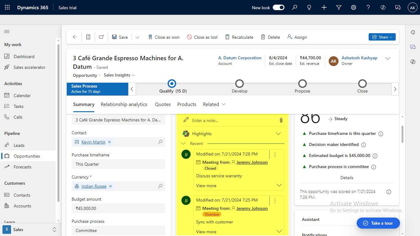 See Dynamics 365 Sales in action. Watch the demo and take the guided tour to explore how AI, automation, and intelligent insights can transform your sales performance.